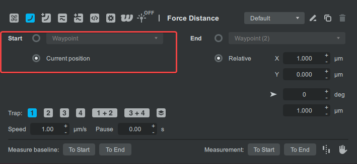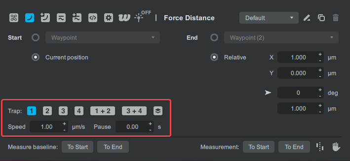 This module allows the user to measure force distance curves while moving a trap towards an absolute or relative position.