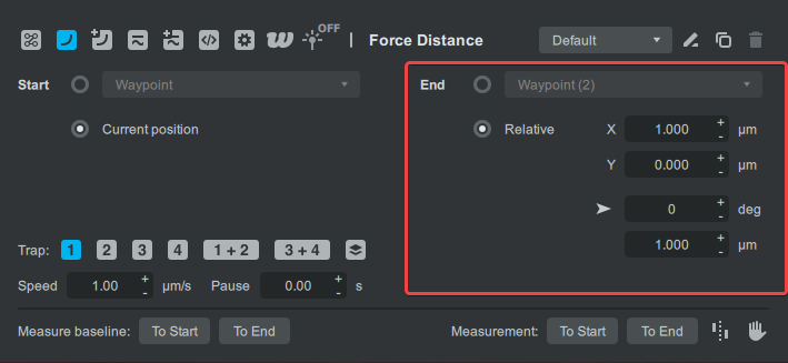 The end position of the movement can be either an existing waypoint, or a position relative to the start position. It